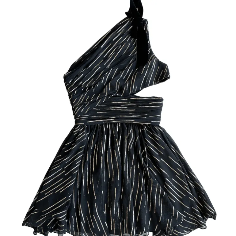 Monospalla Yves Saint Laurent con gonna mini balze e lustrini applicati