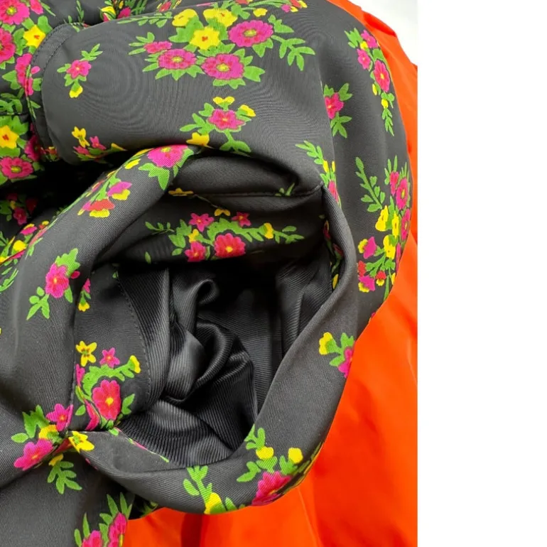 - Tessuto nero + Trama floreale multicolore in 100% Poliammide