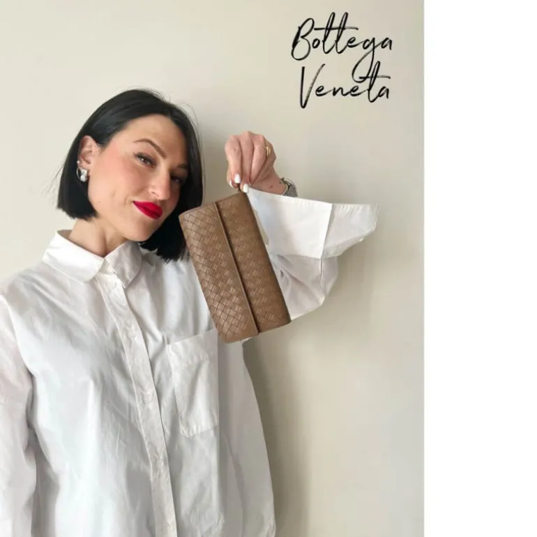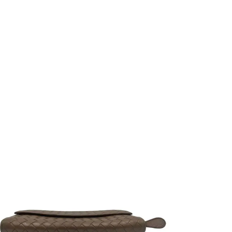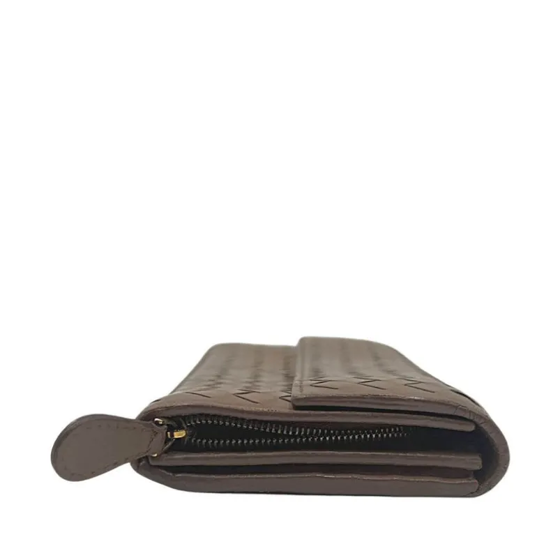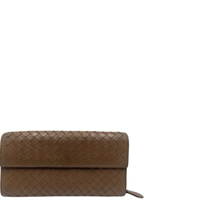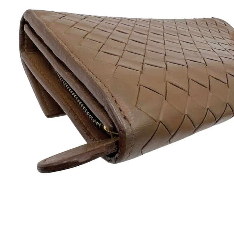 Portafoglio Bottega Veneta in pelle intrecciata marrone.